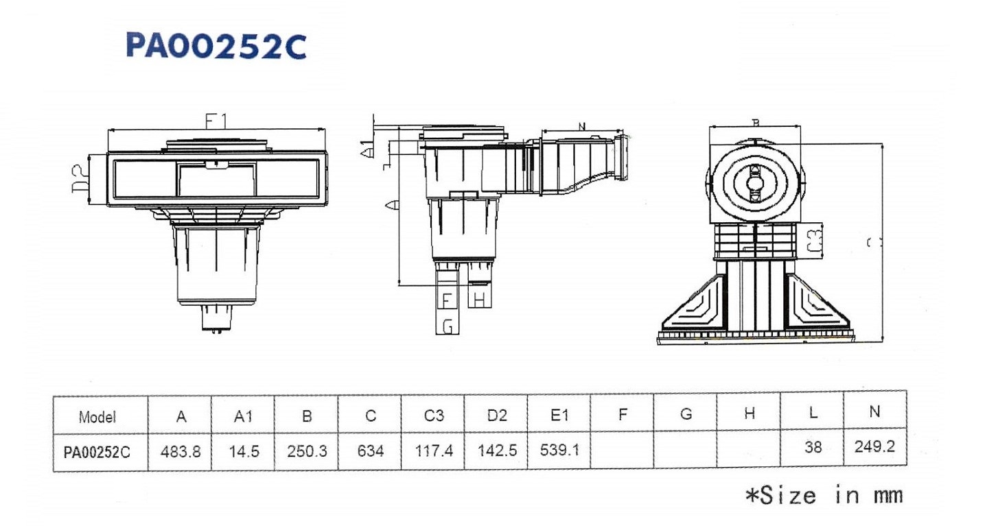 Narrow Mouth ABS Skimmer w/ Square Frame and Round Lid for Concrete Pool