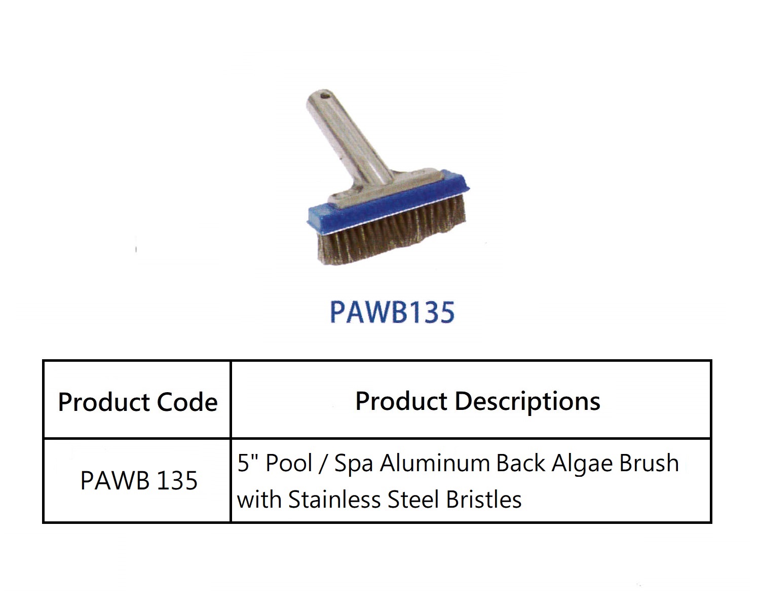 5 inch Pool / Spa Aluminum Back Algae Brush with Stainless Steel Bristles